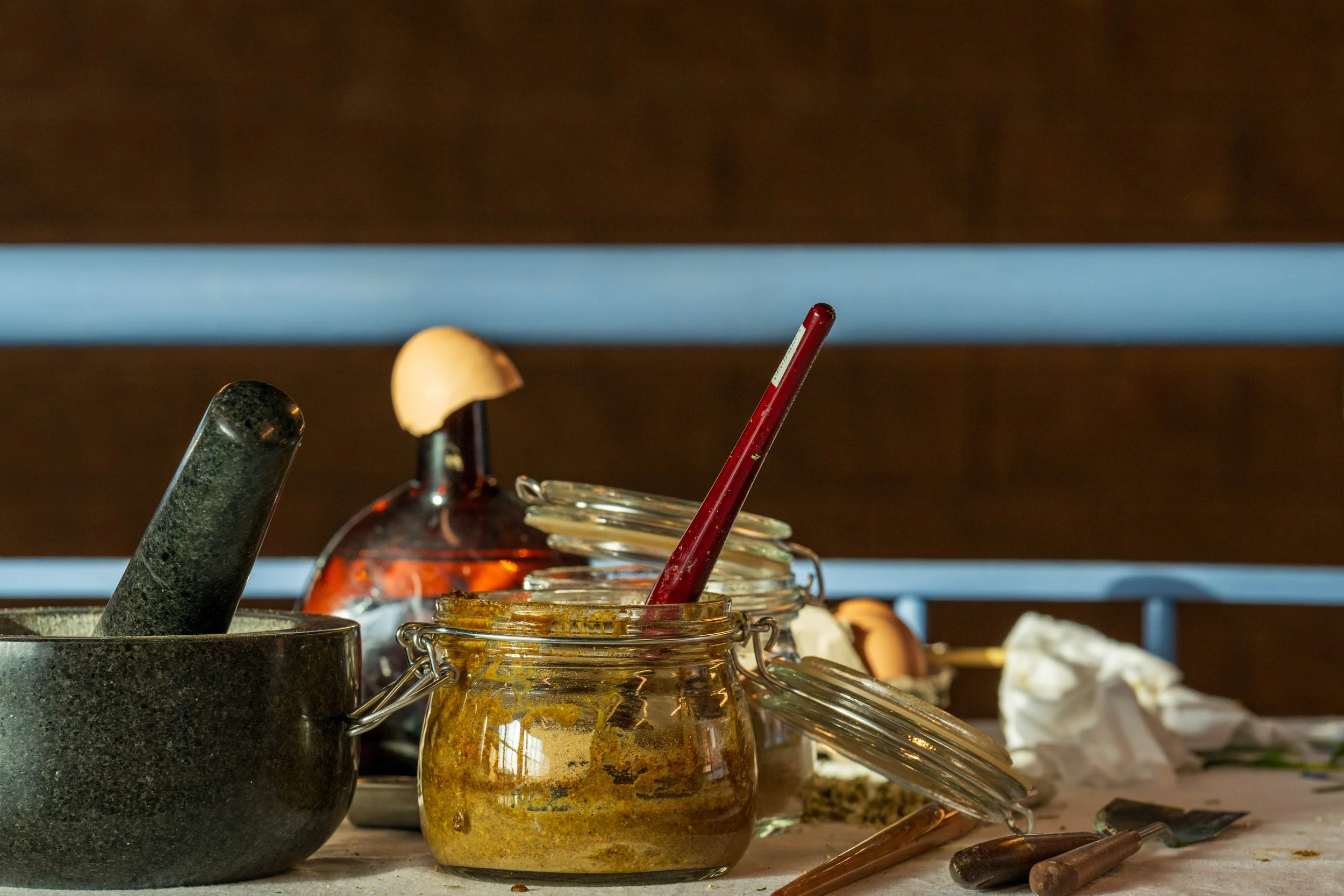I ground a mixture of chamomile, ranunculus, red clover, cinnamon, ginger with egg yolk, vinegar and water to make an egg tempera ‘paint’ out of ingredients that boost fertility.
